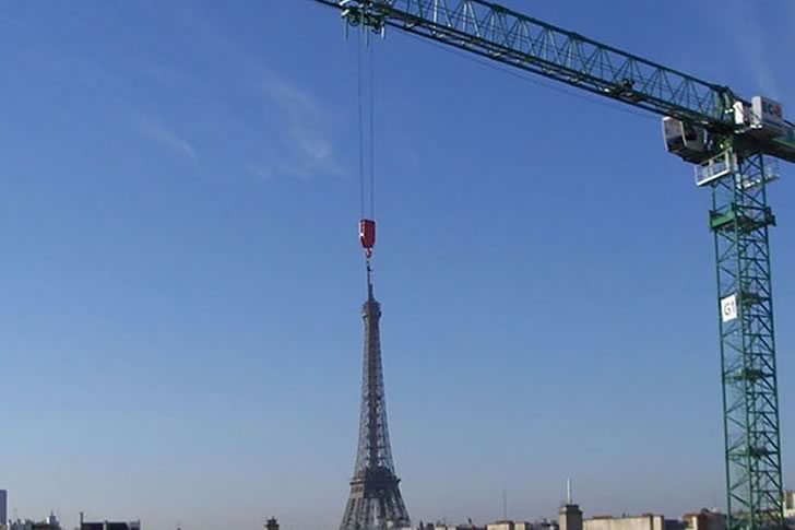 At first glance, this image might leave viewers wondering if the Eiffel Tower is being lifted into place by a massive crane. Thanks to an impeccable alignment and perspective, the photo makes it look as though the famous Parisian landmark is dangling from the crane’s hook like a model being gently positioned in a cityscape. It’s a prime example of visual illusion made possible by perfect timing and camera angle.