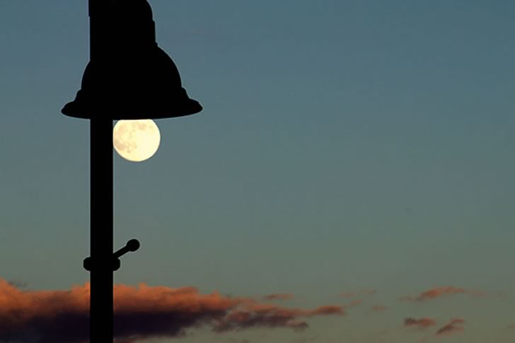 In this whimsical photograph, timing and perspective align perfectly to create the illusion that a streetlamp is glowing with the soft radiance of the full moon. The lamp’s silhouette frames the moon so precisely that it looks like the light has been switched on, casting a serene glow against the backdrop of a dusky sky. It’s a clever play on visual alignment, one that transforms an everyday object into something unexpectedly magical.