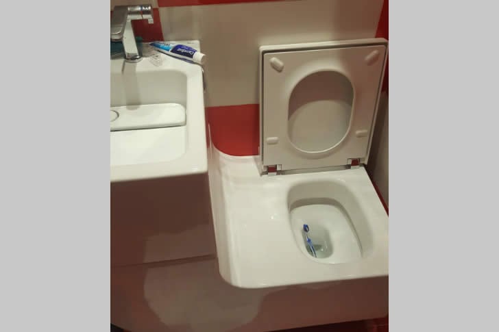 43 Falhas de Design Tão Constrangedoras, Designers Profissionais Estão Implorando Para Você Não Rolar 30. Pia acoplada ao vaso sanitário, formando um escorregador perfeito Advertisements Advertisements AnteriorPróxima página Publicação Original Advertisements PREV NEXT PAGE