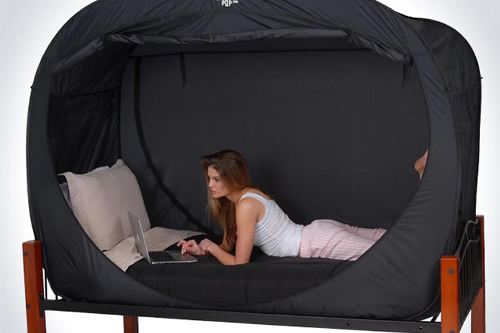Sometimes, you want privacy… even in your own bedroom. That’s what the creators of the Privacy Pop tent banked on—a full canopy that zips closed over your entire bed, creating your own sleep fortress. Think mosquito net meets camping gear meets teen angst.
