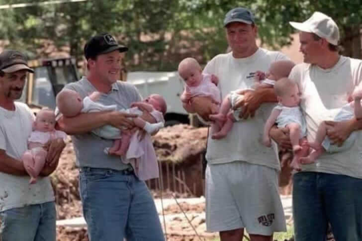 Even the construction workers who were building the family’s new home took time to bond with the babies. In fact, there are photos of these workers holding and playing with the children during breaks.