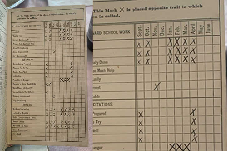 The paper’s yellowed, the corners are curled, and it smells like pure nostalgia — or maybe just 99-year-old paper. Either way, it’s a charming peek into academic life when “remote learning” meant daydreaming by the coal stove. No stickers, no emojis, just old-school evaluation and a stern teacher signature. Honestly? It deserves a frame and a gold star.