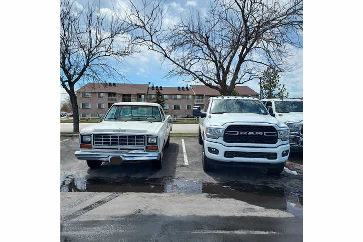 Here’s a cool throwback showing the Dodge 3500 with a 38-year gap between models. The older version looks rugged and straightforward, built tough for hard work without all the bells and whistles. Fast forward nearly four decades, and the newer model is sleek, powerful, and packed with tech that would’ve blown the minds of truck fans back in the day.