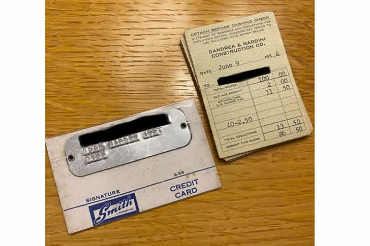 I found my grandparents’ old credit card and pay stubs, and it’s like holding a piece of financial history. The card is bulky, probably made for a hand twice as big as mine, with a classic embossed number and no chip in sight.