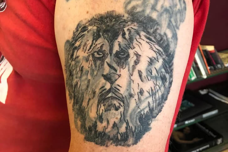 A lion tattoo should symbolize strength, courage, and majesty. Unfortunately, this one looks like a wet poodle caught in a thunderstorm. The mane is patchy and messy, and the eyes have a confused, sad expression rather than a fierce glare. Instead of a proud king of the jungle, it’s a confused canine.