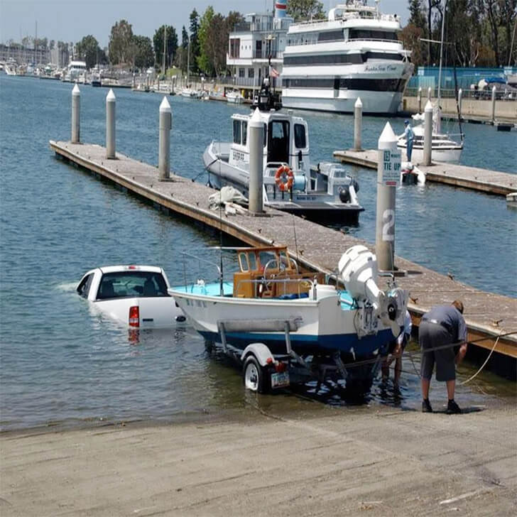 In einer Wendung der Ereignisse, die selbst die geschicktesten Drehbuchautoren nicht hätten schreiben können, nimmt ein Lastwagen in einem tapferen, aber fehlgeleiteten Versuch, eins mit dem Meer zu sein, seine Schiff-Abschlepppflichten einen Schritt zu weit, indem er kopfüber ins Wasser taucht. Stellen Sie sich die Szene vor: ein typischer sonniger Tag am Ufer, Fahrzeuge kommen und gehen, und dann plötzlich – platsch! – der Lastwagen beschließt, dass er an der Reihe ist, schwimmen zu gehen.