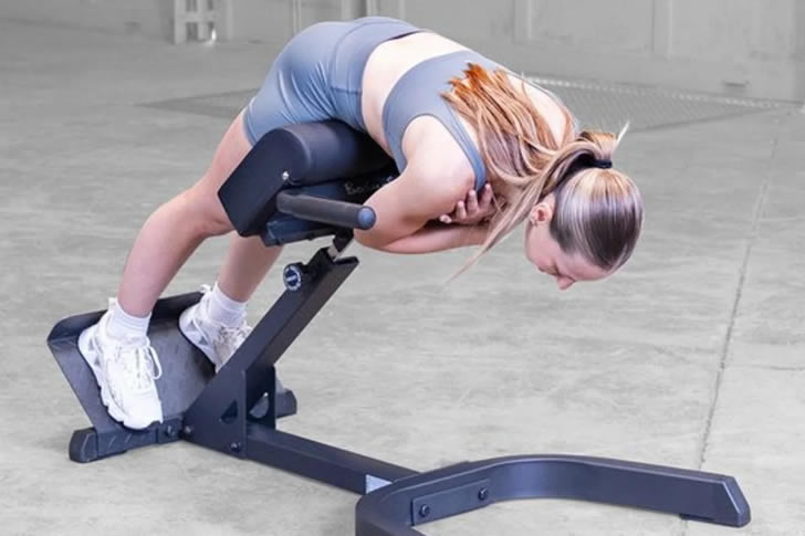 This contraption forced users to arch their backs over a curved wooden bench with straps holding their legs in place. The goal was to strengthen the lower back muscles by lifting and lowering the torso against gravity.