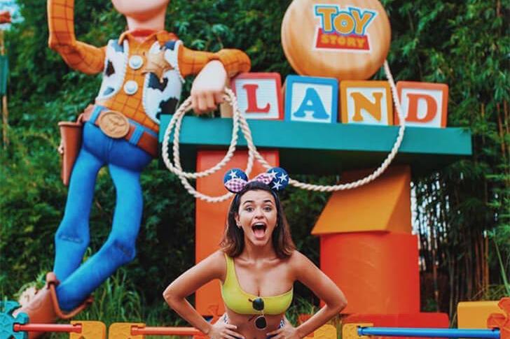 This young woman looks absolutely thrilled to be in Toy Land, even coordinating her outfit with the lead character from Toy Story. One can’t help but wonder how many times she must have watched Woody and the gang growing up — her love for the movie really shines through in this playful, themed outfit.