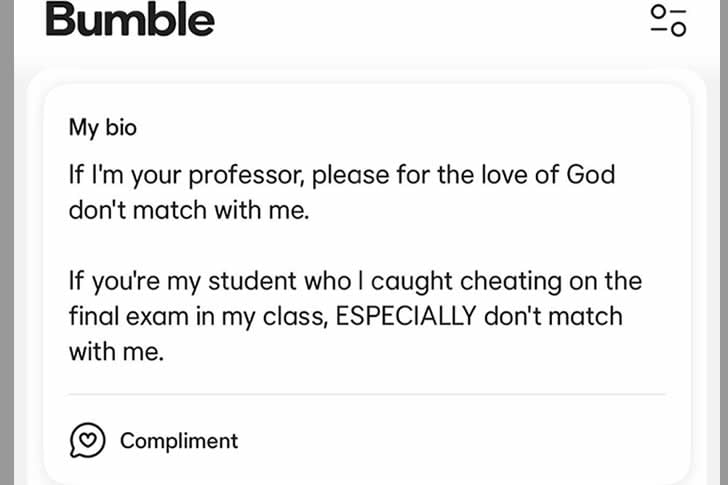 40 Momentos Hilarantes de Bumble que te Harán Alegrarte de No Estar Deslizando Más 4. Estoy muerto… una de las biografías más divertidas jajaja Advertisements Advertisements AnteriorSiguiente página Publicación Original Advertisements PREV NEXT PAGE