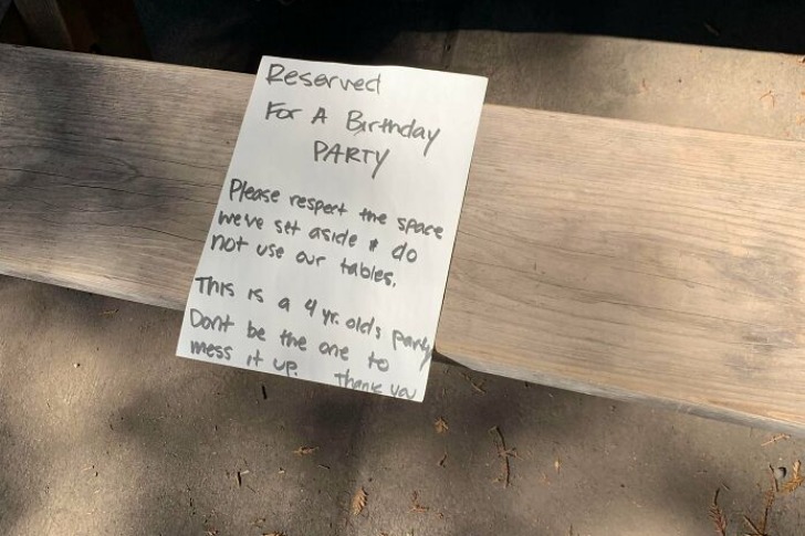 公園開園四小時了,卻沒看到他們人影,其他桌子都坐滿了。不接受預訂的公園,就是先到先得。但用物品佔位後消失好幾個小時?這真是自以為是的極致,讓其他家庭在假日裡手忙腳亂。