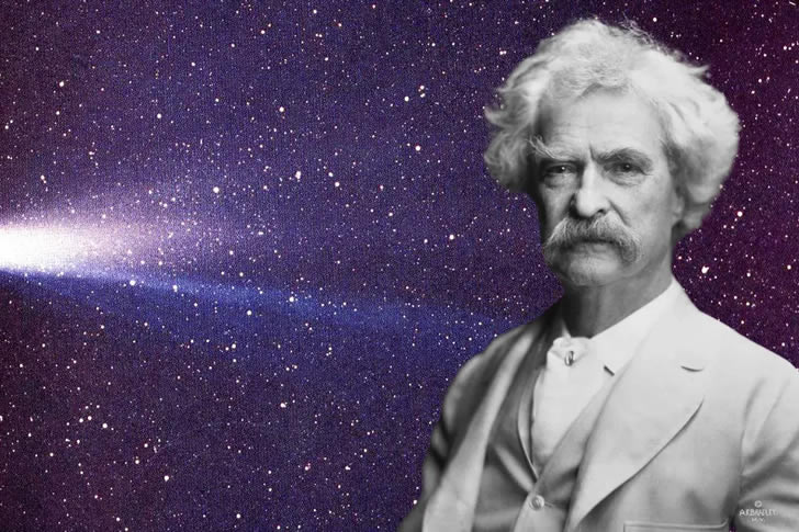 Mark Twain wurde 1835 geboren – im Jahr, in dem der Halleysche Komet am Himmel zu sehen war. 1909 sagte er, er werde mit dem Kometen kommen und gehen. Tatsächlich starb er am 21. April 1910, nur einen Tag nach dem erneuten Erscheinen des Kometen.