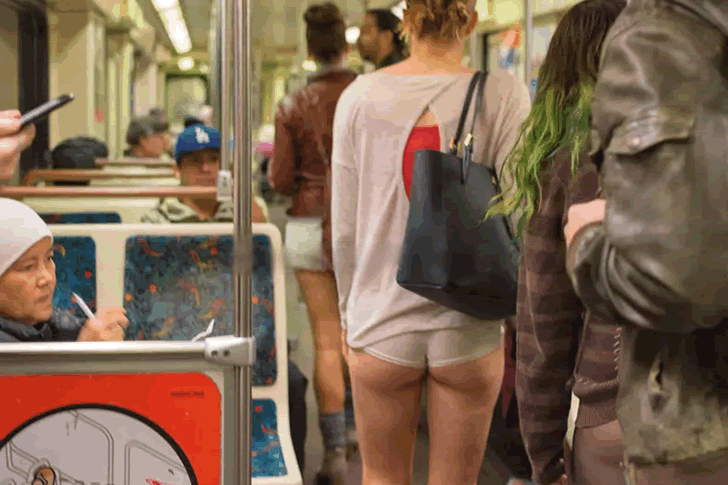 Da staunten die Fahrgäste nicht schlecht! Wer weiß, vielleicht ist das ja der neueste Modetrend aus Paris? Oder sie hat einfach ihre Hose in einer anderen Linie vergessen? Im Endeffekt ist die U-Bahn eben auch eine Fashion-Show mit sehr individuellem Stil!