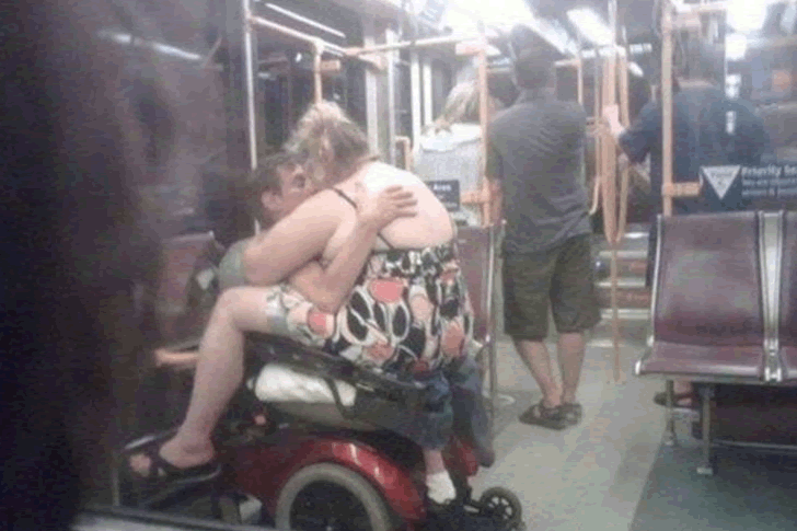 In der U-Bahn gilt offensichtlich das Motto “Liebe ist überall”. Genau das denkt sich dieses Pärchen, das seine Zuneigung ganz ungeniert zeigt. Die U-Bahn – ein romantischer Treffpunkt, irgendwo zwischen Abstellgleis und Endhaltestelle.
